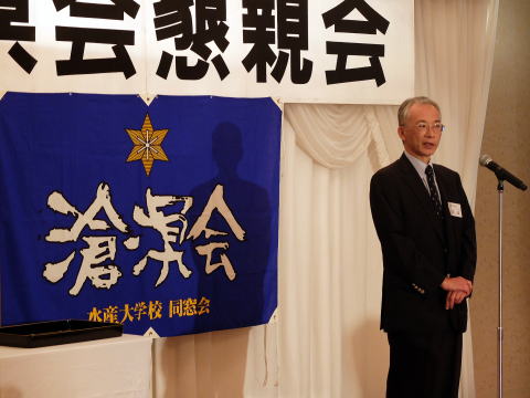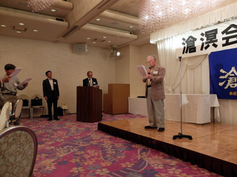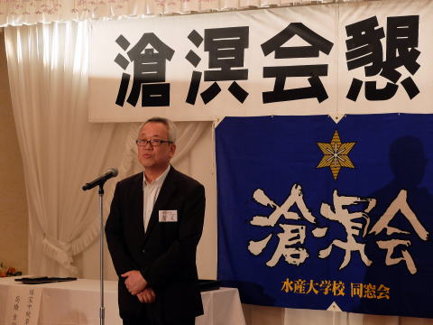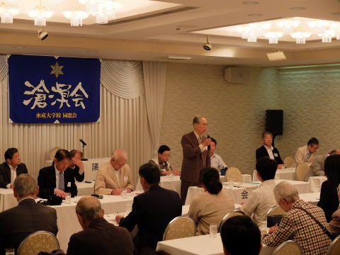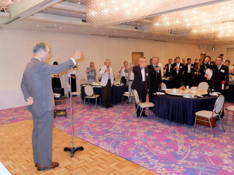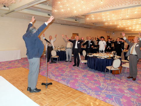 渡部健治氏(製造 26 期)の指揮による水産放浪歌斉唱