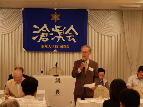 織田光晴氏(漁業 14 期)の指揮による寮歌斉唱